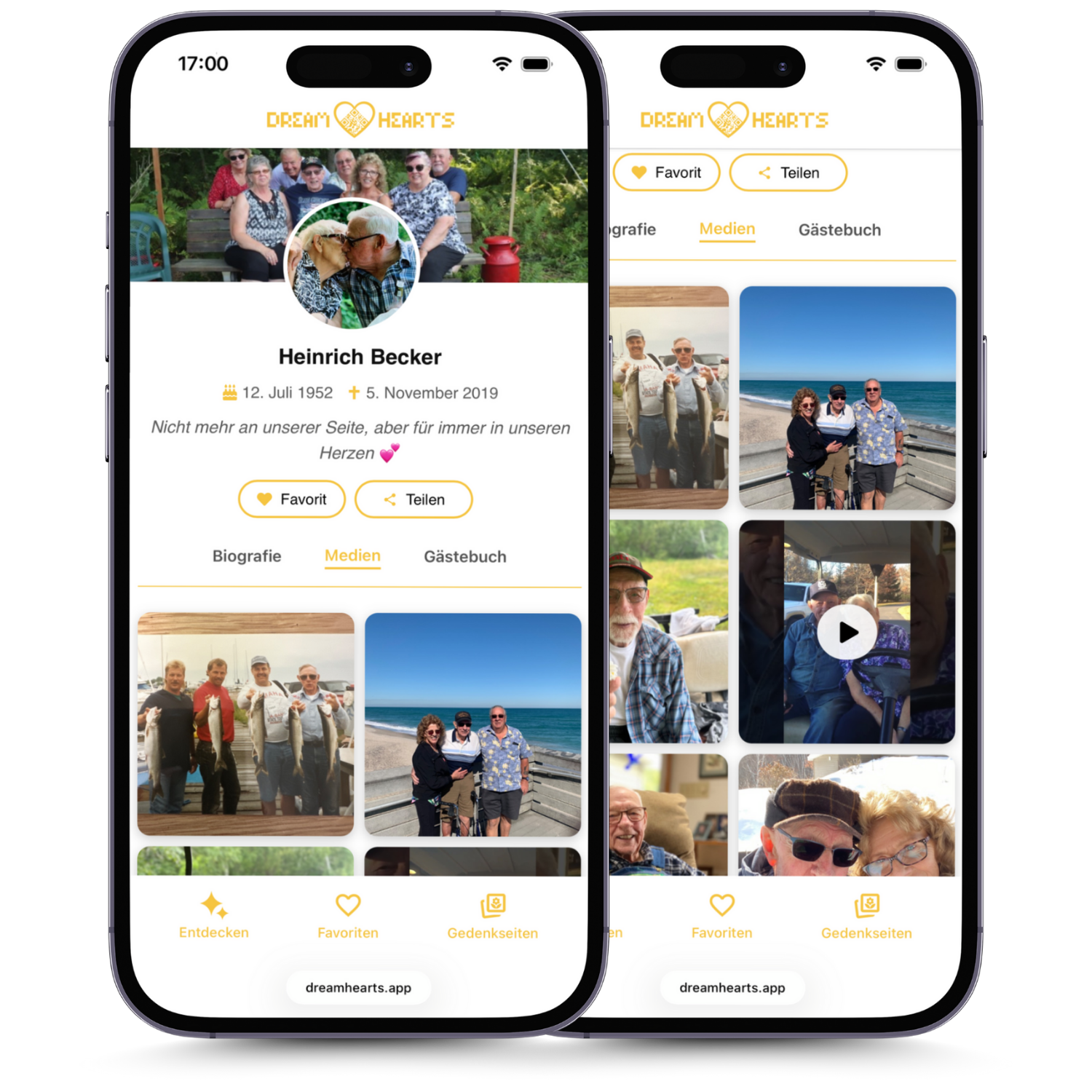Um dir zu zeigen, wie eine DREAM HEARTS Gedenkseite aussieht, kannst du dir hier eine Gedenkseite ansehen.